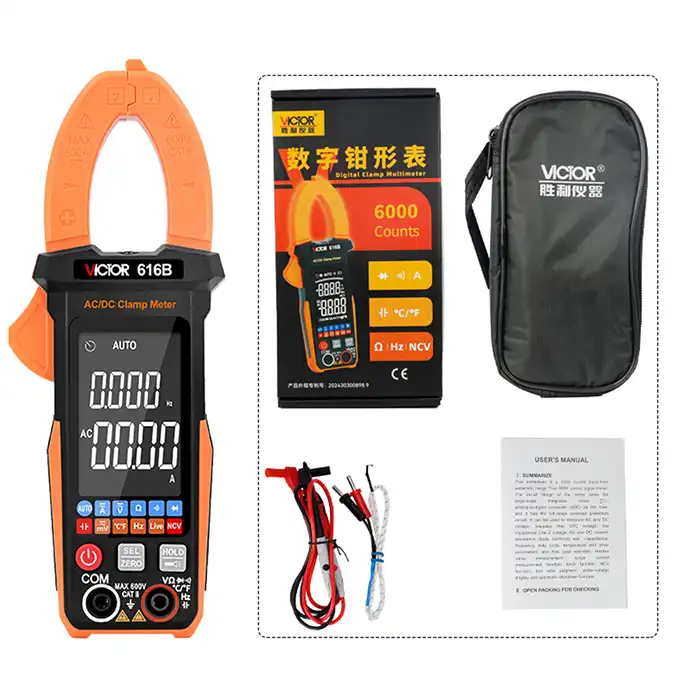 کلمپآمپرمتر چنگکی Victor 616B ابزار حرفهای برای اندازهگیری جریان AC/DC تا 600 آمپر با دقت True RMS و نمایشگر دوگانه است. این دستگاه علاوهبر جریان و ولتاژ، پارامترهای محیطی و فرعی را نیز نمایش میدهد. طراحی سبک و دهانهی گیرهی 32 میلیمتری آن را برای تکنسینها، برقکارها و مهندسین نگهداری ایدهآل میسازد.